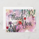 Cartão Postal Obrigado Flor Silvestre Fofa Aquarela Nuvem Mármor