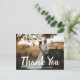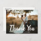 Cartões de agradecimentos moderno com o roteiro de pincel e sua foto de casamento. Adiciona também a mensagem e a foto do seu obrigado no verso.