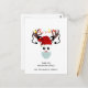 Mostre aos trabalhadores da linha de frente da pandemia de Covid que você aprecia seu trabalho árduo e se preocupa com amigos e familiares com este cartão postal de Natal "Obrigado Heróis da Saúde" de 2020. O cartão tem um design moderno e alegre com um rosto de rena com nariz vermelho usando máscara Covid-19. Os estetoscópios e as luzes de Natal estão emaranhados nos chifres da rena. O texto é "obrigado trabalhadores da saúde" seguido pelo seu nome ou empresa personalizado.