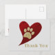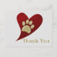 Cartão Postal Obrigado Impressão de Pata Dourada Coração Vermelh
