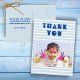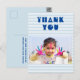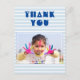 Cartão postal de agradecimento moderno de aniversário. Cartão de agradecimento personalizável para crianças. Cartão de agradecimento de aniversário com foto - personalize com sua foto e seu nome. Listras modernas brancas e azuis. // É perfeito para crianças - ótimo para agradecer amigos e familiares pelos presentes de aniversário e por estarem na sua festa, ou por qualquer outra ocasião.
