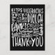 Cartão Postal Obrigado Multilíngue Tipografia Branca Preto