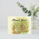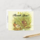 A frente desta obrigado de aparência vintage que você coloca no cartão postal apresenta a mensagem "Obrigado!" em um script como texto, junto com uma representação de dois patos perto de alguma água. A parte traseira apresenta uma mensagem personalizada de obrigados. Um postal como este pode ser usado para enviar uma mensagem de obrigados a alguém que fez algo especial.