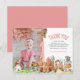 Obrigado pela Foto de Um Ano da Floresta das Fadas. O design apresenta foto da menina aniversariante, ícones da floresta das fadas, gnomo, fadas, pássaros etc e agradecimento em tons brilhantes de rosa. Personalize com sua mensagem e nome.