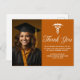 Um clássico cartão postal de agradecimento personalizado de formatura em medicina, em laranja e branco clássico para uma faculdade ou universidade da turma de 2024. Personalize com o nome da sua escola e turma de formatura sob o caduceu e caligrafia para um cartão postal de foto de graduado personalizado e elegante com sua foto de formatura.