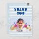 Cartão postal de agradecimento de aniversário moderno. Cartão de agradecimento personalizável para crianças. Cartão de agradecimento de aniversário com foto - personalize com sua foto e seu nome. Listras modernas brancas e azuis. // É perfeito para crianças - ótimo para agradecer aos amigos e familiares pelos presentes de aniversário e por estarem na sua festa, ou por qualquer outra ocasião.