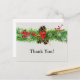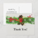 Este elegante design apresenta um ramo de pinheiro com pinhas, frutos vermelhos, flocos de neve e uma fita vermelha. O texto pode ser personalizado.