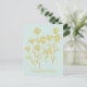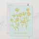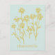 Um cartão postal para dar aos clientes para agradecê-los por seus negócios decorado com flores de camomila em um tom quente de amarelo sobre um fundo turquesa claro. No verso há um tom suave de cinza e texto que você pode editar para atender às suas necessidades.