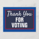 Obrigado por votar no design. Com muitos cidadãos dos Estados Unidos usando a votação por correio durante a pandemia e outros aproveitando a votação antecipada pessoalmente, temos um dia de eleição, mas muitos dias de votação. Agradeça seus vizinhos por votar com este design claro, conciso e direto em cores personalizáveis. Descrição do design: Um retângulo azul escuro com uma borda branca ocupa a maior parte do espaço de design. No meio do retângulo estão as palavras "Obrigado por votar" em fonte sans serif maiúscula branca. Fora do retângulo há uma borda azul média para contraste. As cores são personalizáveis.