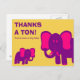 Mostre a sua gratidão com este obrigado fofo que você postcard apresentando dois elefantes cor-de-rosa contra um fundo amarelo com texto personalizável.