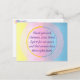 O tipo de afirmação oração de agradecimento pela paz e pelos direitos das mulheres, é impressa em cartões-postais personalizados. A oração diz: "Obrigado Deus, Universo, Amor, Grande Espírito pela nossa paz e por as mulheres terem seus direitos de volta". A oração é escrita dentro de um círculo amarelo e azul em tons de amarelo, rosa e azul. Obrigado por comprar na CherylsArt no Zazzle.