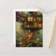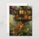 Belo cartão postal criado usando o software de renderização AI apresenta uma casa de árvore e observatório estilo Steampunk com cômodos e janelas redondas.