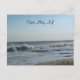 Lindas ondas de oceano azul-claro que caem na orla costeira da areia, com um céu azul bonito e nuvens peludas na adorável cidade de Cape May Point, NJ. Fotografia original © TamiraZDesign.