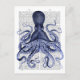 Octopus 3 azul de Fab Funky. Apresenta um polvo azul-roxo com uma página de livro para um fundo.|190413D