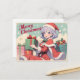 Cartão Postal Oferta de presente de filha do Papai Noel retrô da