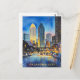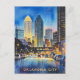 Uma ilustração cativante do horizonte de Oklahoma City à noite. A imagem mostra os edifícios icônicos da cidade iluminados contra um céu estrelado, com o reflexo das luzes brilhando nas águas calmas abaixo. A design evoca um sentido de tranquilidade e beleza urbana.