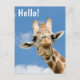 design engraçado apresenta fotografia de girafa animal com texto branco "Olá" .