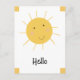 Grande sol sorridente, de amarelo brilhante com a palavra "Olá". Clique em personalizar se desejar alterar o texto. Use este cartão para um aniversário, só porque, eu te amo ou para animar alguém e fazê-los felizes.