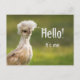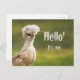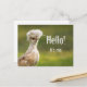 Este cartão postal de frango engraçado mostra uma mensagem "Olá" personalizável com uma fotografia engraçada de um jovem frango polonês. Fotografia da fotógrafa Maria Jeffs, prêmio vencedora.