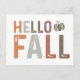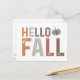 Este design do outono dá as boas-vindas à estação do outono com a frase "Olá outono". As palavras são dispostas em um layout simples, mas visualmente atraente, com "Olá" colocado acima de "Queda". Cada letra da frase é apresentada em uma fonte arrojada, achatada com uma textura levemente amaldiçoada, dando a ela um olhar rústico e metido que complementa o tema do outono.