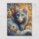 Cartão Postal Olhar Dourado: Retrato Felino em Olhos Amarelos