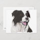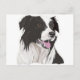 Esta design apresenta o meu desenho de uma Collie da Fronteira Negra e Branca, baseado no meu próprio cigano de estimação. É uma pose característica, mostrando seu rosto de lado, ofegando na antecipação de um jogo, também refletida em seus gentis olhos castanhos.
