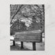 Um Banco no parque, atrás de você pode ver a cidade através das árvores.
