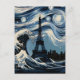Uma representação estilizada da Noite Estelar de Van Goghs e de Hokusais A Onda de Excelente de Kanagawa, apresentando a Torre Eiffel no lugar do Monte Fuji.