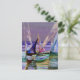 Cartão Postal Ondas do mar roxa Abstrato de veleiro