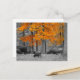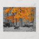 Imagem de uma manada Bison focada em bisão jovem, a imagem é em preto e branco, com apenas as folhas cor laranja do outono. Cria um salto de cor de laranja de zestidade.