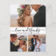 Na moda de Orçamento Mão Elegante com a letra "Amor e obrigados" Script 3 Foto Collage Wedding Obrigado postal. Modelo de cartões de agradecimentos de casamento minimalista com 3 fotos na frente e uma foto na parte de trás. Com o texto "Amor e obrigados" numa letra de tipografia ou de tipografia escrita, escrita à mão, com haste ou a preto sobre fundo branco. Um pouco de amor entre os nomes e a data. É fácil adicionar seu nome personalizado e sua mensagem de obrigado. Se você precisar de ajuda ou item correspondente, entre em contato comigo!