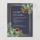 Folhas de eucalipto lindas e pinhas de inverno com detalhes em azul poeirento são características deste casamento de outono, outono, inverno. Parte de uma coleção maior que inclui convites de casamento econômicos, save the dates, RSVPs, cartões de foto de agradecimento, presentes para a noiva e para o cortejo, e mais. Para um guia detalhado GRATUITO de planejamento de casamento de inverno, visite weddingdesignchic.com.