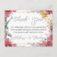 Mostre seu apreço à sua família e amigos com nosso belo cartões de agradecimentos floral! Nosso único design mostra um padrão floral de burlôncio, ouro e eucalipto em estoque de cartolina de alta qualidade. Perfeito para casamentos, aniversários, e mais, este cartão deixará uma impressão duradoura de sua gratidão. Faça seus entes queridos se sentirem especiais com este belo cartões de agradecimentos hoje! Simplesmente personalize-o com seus próprios detalhes.