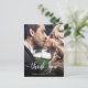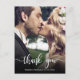 Moderno Elegante Escrito Foto de Casamento de Script Obrigado postal. Obrigado de casamento do Na moda moderno seu modelo de cartão postal com uma foto vertical do cheio na frente com o texto sobreposto "Obrigado" em uma fonte de script de tipografia escrita à mão, em branco, na foto. Personalize o nome personalizado e a mensagem do obrigado. Se preferir escrever manualmente a sua nota, basta eliminar o texto de amostra para obter mais espaço. Se você precisar de ajuda ou item correspondente, entre em contato comigo!