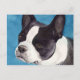 Este postal mostra uma reprodução da minha pintura de aquarela original de boston terrier.