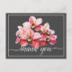 Cartão Postal Orquídeas Rosa e Branco Fundo Cinza Obrigada