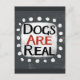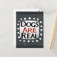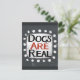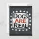 "Cachorros são reais" é um design de texto bonito em cinzas com texto preto e vermelho, junto com forma de sotaque branco e pontos brancos texturizados ao seu redor.