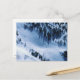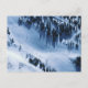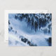 Esta foto foi tirada do ar e mostra os esquiadores a caminho da montanha. As árvores alinham a descida do caminho. O dia estava brilhante e ensolarado. Estes cartões postais podem ser usados em qualquer caso.