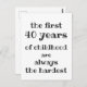 NovoLanePark - Cartão de Aniversário de 40 anos, com citação engraçada 'Os Primeiros 40 Anos de Infância são Sempre os Mais Difíceis', em tipografia moderna e divertida.