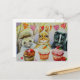 Cartão Postal ouriço Coelho Gambá & Cupcakes Arte em Aquarela