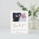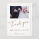 Elegante Ouro Script Wedding 2 Fotos Obrigado Cartão-postal. Um imã de casamento com foto de casamento na frente e atrás, noiva e noiva e a data do casamento. Adicione a sua mensagem pessoal no verso ou apague-a e escreva a sua mensagem manualmente. Uma forma excelente de obrigado a sua família e amigos com este simples, mas elegante cartão com fotos de casamento.