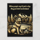 Um German shepherd de ouro se senta ao lado de uma fogueira em um cenário de floresta serena. A lua brilha intensamente no céu noturno, e o lobo escurece no lago calmo. A cena é reproduzida num estilo detalhado e de arte, evocando um senso de paz e tranquilidade.