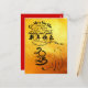 Pintura bonita e adorável de um gato + Large 2023 com desejos em muitas línguas: Vietnamita, Chinês, Inglês, Russo, Francês, Alemão, Espanhol, Finlandês, Sueco... Design no cartão postal padrão vertical com imagem texturizada do ouro como fundo (frente). Cartão de saudação correspondente. Perfeito por desejar boa sorte e riqueza para o Ano Novo Vietnamita do Cat 2023.