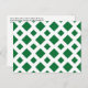 Um padrão geométrico ousado de grandes e pequenos diamantes verdes sobre fundo branco. O branco forma uma trava que separa as formas de diamante. Imagem criada digitalmente. Copyright ©2013 Claire E. Skinner, Todos os direitos reservados.