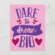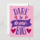 Cartão postal Ouse Sonhar Grande. Texto Personalizado Fácil Disponível. Designs alegres, felizes, inspiradores e motivacionais. Transfira este design para mais de 1000 produtos Zazzle, use a funcionalidade 'Transferir Design Para Produto' diretamente acima desta descrição do produto. Obrigado!