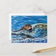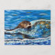 Pintagem do tamanho do cartão postal de uma lontra nadando no mar. Eu pintei isso usando minha própria fotografia para o Postcard Art Exhibit (venda de caridade artística).