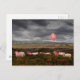 Ovelhas coloridas com um balão de aniversário feliz, Rhossili, Gower, Gales do Sul