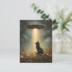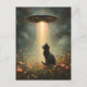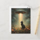 Um gato preto olha para cima para uma arte gerada por IA de Óvni