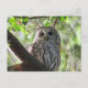 Foto aproximada de uma coruja excelente corada sentada em um galho na floresta com bagas vermelhas sobre sua cabeça.