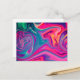 Cartão Postal Padrão Abstrato Azul Rosa Verde Brilhante da Moda